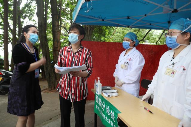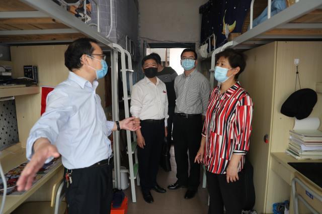 陈新一行首先来到西校门、校医务室、学生宿舍、第三学生食堂等地,检查指导学生入校、入住宿舍、食堂就餐等环节中各项防控措施的具体落实情况。