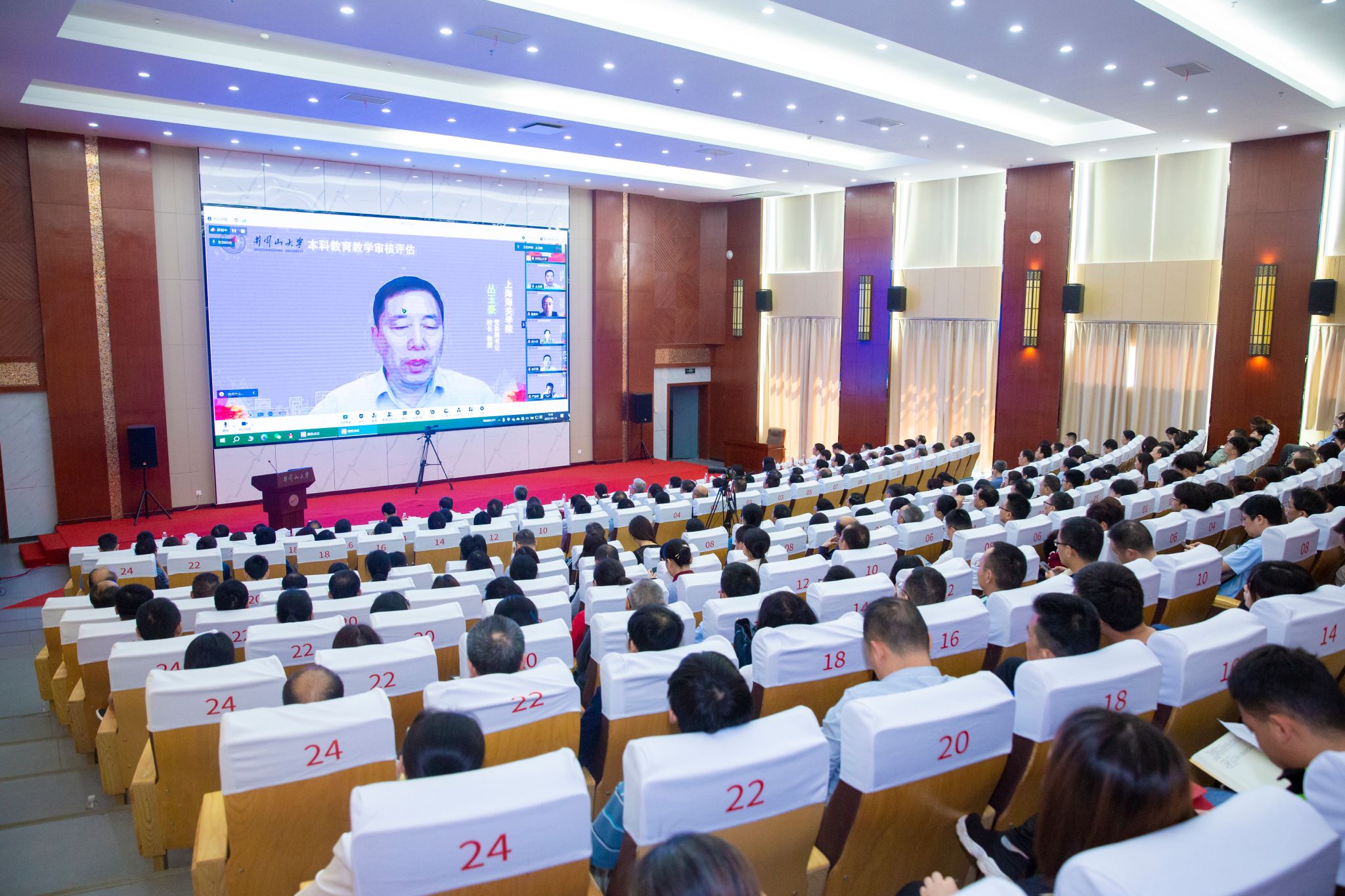 5月14日上午,通过“线上+线下”相结合方式,学校召开本科教育教学审核评估线上评估启动会。教育部本科教育教学审核评估专家组组长、上海海关学院党委副书记、校长丛玉豪,审核评估专家组副组长、南昌大学党委副书记刘耀彬,专家组全体成员、项管秘书,江西省委教育工委委员、省教育厅副厅长汪立夏,教育厅教育督导处处长陈晓通,教育评估监测研究院高教所所长罗运锋等出席,学校党委书记胡春晓,党委副书记、校长罗旭彪,党委副书记肖宜安,党委常委、副校长黄俭根、李军、冷明,党委常委、纪委书记彭西洪,校长助理张赫,学校各职能部门主要负责人,各学院全体院领导、教师代表、辅导员代表、学生代表,校督导成员,评建办全体人员等200余人参加了会议。