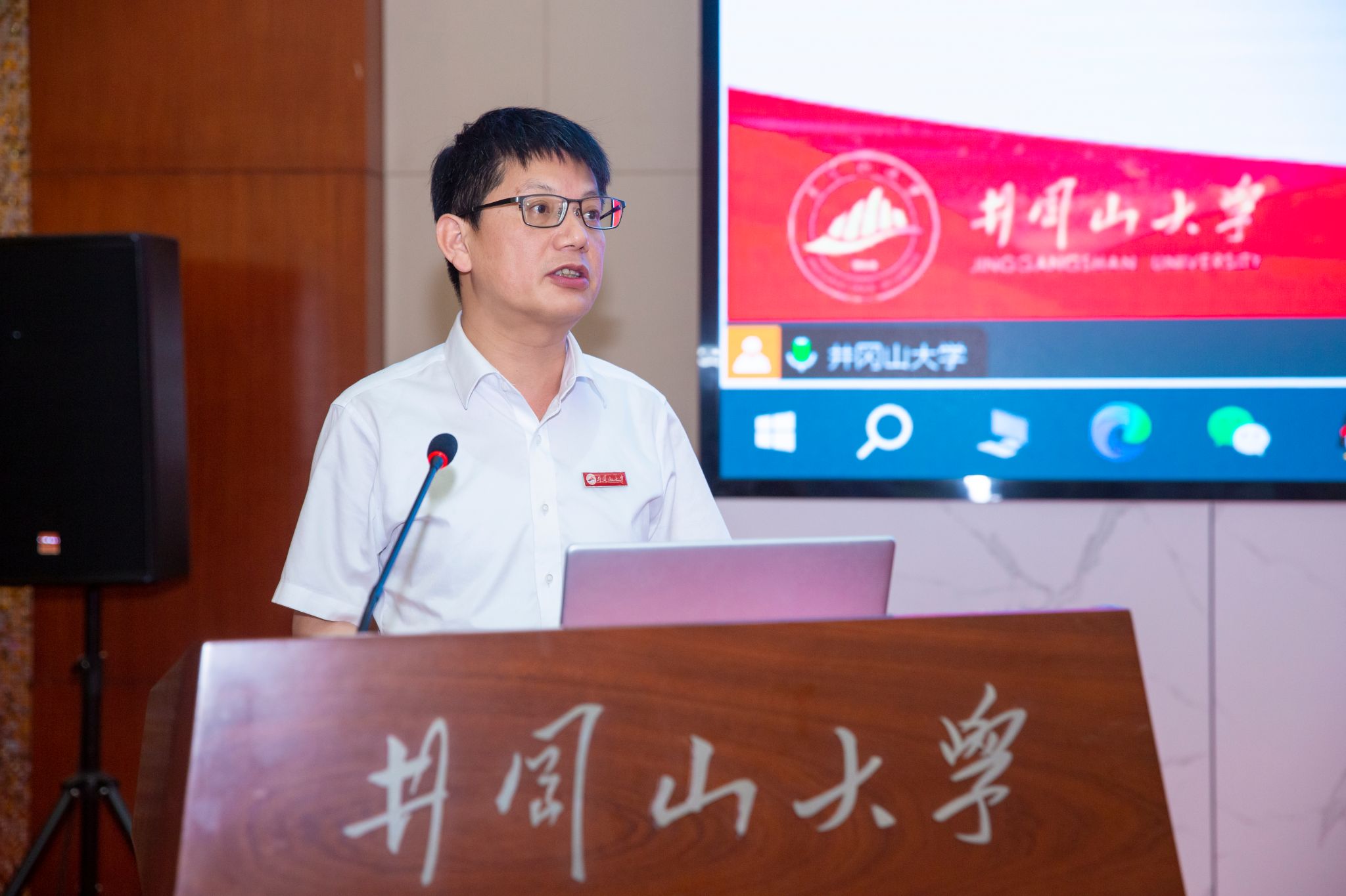 会议第一阶段由罗旭彪主持,汪立夏讲话,胡春晓致辞,与会人员观看了井冈山大学人才培养宣传片。第二阶段丛玉豪主持并讲话,罗旭彪作自评工作汇报。