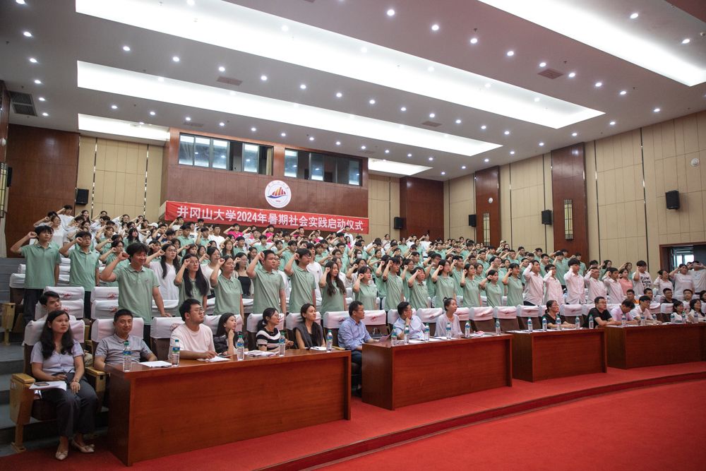 6月26日下午,井冈山大学举行2024年暑期“红色走读”大思政课实践暨“三下乡”社会实践活动出征仪式。校党委副书记肖宜安出席并讲话,校党委常委、副校长敖四江、党委常委、宣传部部长肖洪海出席并为实践团队授旗,党委学生工作部、团委、教务处等部门负责人,各学院党委副书记、团委书记,各实践服务团队师生代表300余人参加出征仪式。