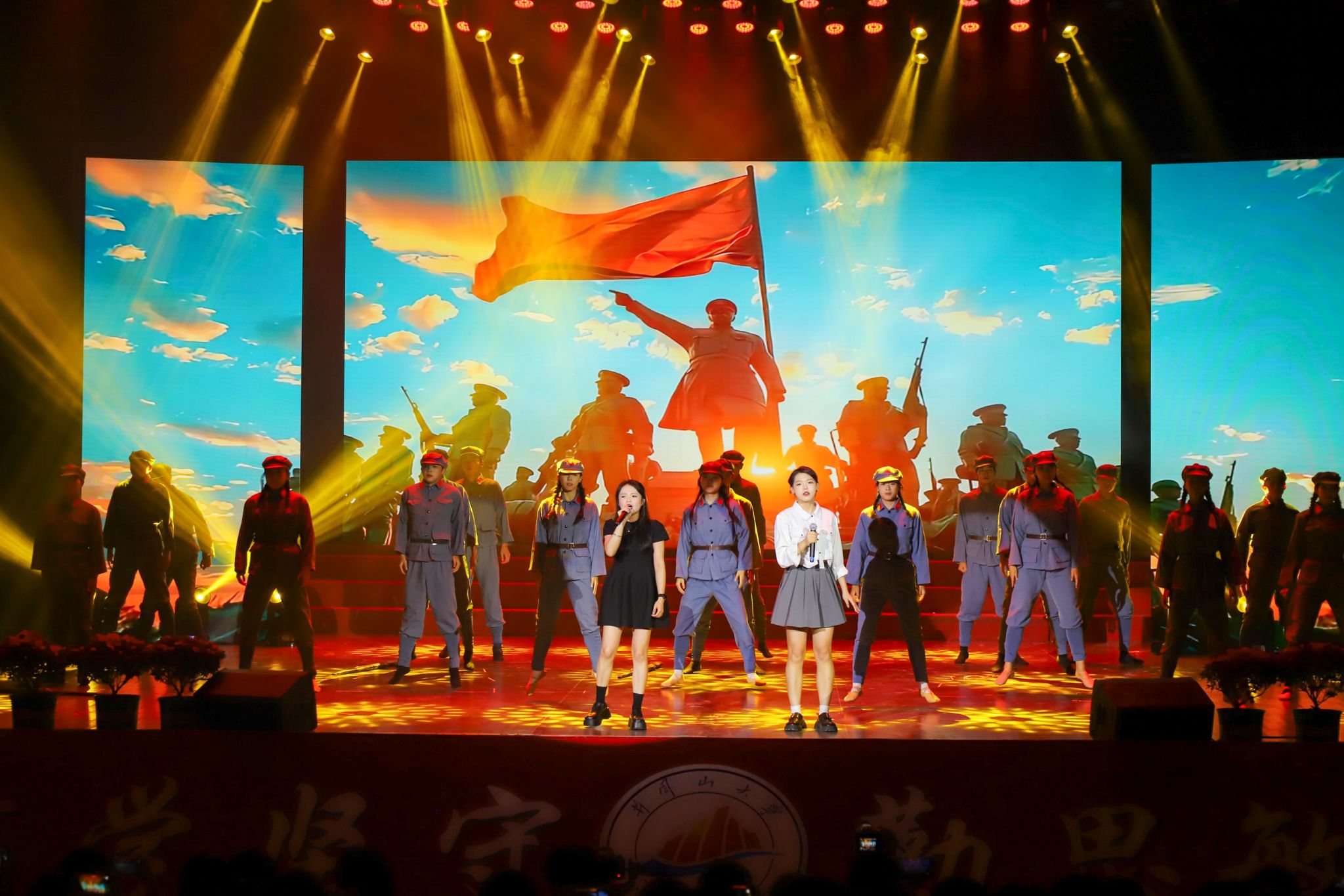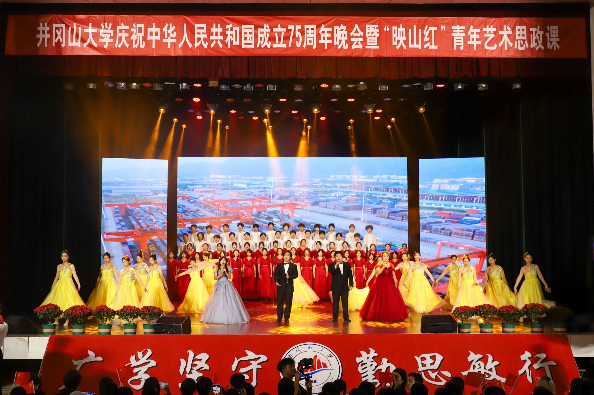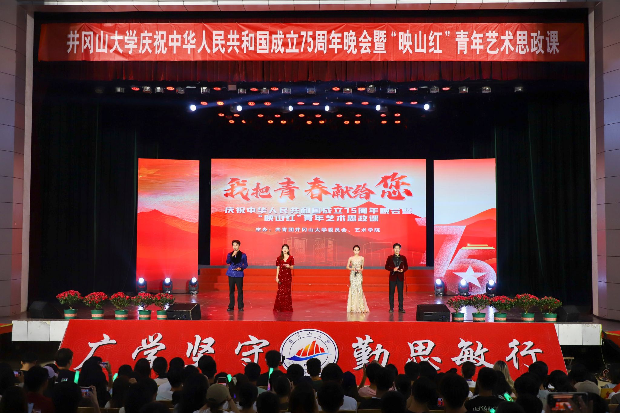 为庆祝中华人民共和国成立75周年,弘扬爱国主义精神,铸牢中华民族共同体意识,更好的持续用艺术舞台的方式引导青年学子坚定理想信念,引领青年成长成才,9月29日晚,井冈山大学团委组织的“我把青春献给您”庆祝中华人民共和国成立75周年晚会暨“映山红”青年艺术思政课在学生会堂举行。校党委副书记、校长罗旭彪、校党委常委副校长黄俭根、校党委常委纪委书记彭西洪、校党委常委副校长黄族豪、校党委常委宣传部部长肖洪海出席,全校师生代表1200余人现场参加了本次活动,还有团支部团员青年10000余人通过线上直播进行观看,全校团员青年线上线下同上一台思政课,共同见证了一场精彩纷呈、意义非凡的文化视听盛宴。