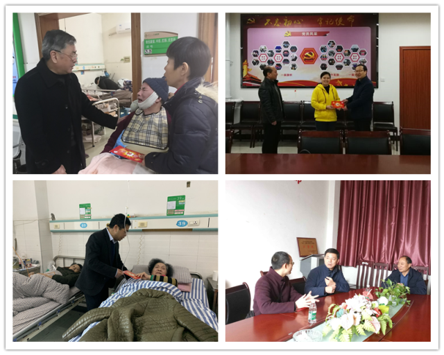 1月2日,校领导曾建平、温和瑞、吕玉华、史胜平、陈小林、黄俭根、肖宜安、李军、孙宜学,在有关部门和单位负责人的陪同下,分别走访慰问了学校的厅级离退休干部、离休干部、重病和生活困难职工、优秀教职工代表、困难党员、党外人士代表,以及困难学生党员和家庭经济困难学生,为他们发放了慰问金,并为他们送去学校的关怀和温暖,送上诚挚的新春祝福。