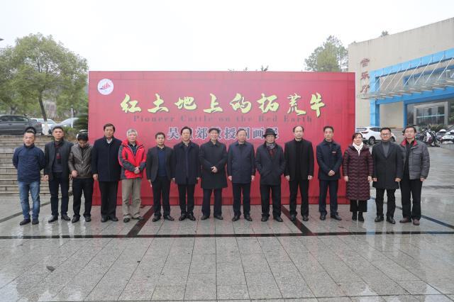 12月26日,中国著名画家、井冈山大学客座教授吴祖郊来校举办“红土地上的拓荒牛”个人国画展。吉安市政协副主席、吉安市工商联主席、庐陵书画院名誉院长徐年春出席,吴祖郊教授、校党委副书记温和瑞分别致辞,党委常委、副校长肖宜安主持开幕式。开幕式上,吴祖郊教授为学校捐赠国画作品和部分图书。来自吉安市书画艺术界的艺术家、艺术学院师生共计300余人参加了开幕式。 温和瑞指出,吴祖郊教授个人国画展的举行,不仅为井冈山大学的师生带来了一场视觉盛宴,更是为艺术学院的师生提供一个学习交流的机会,必将进一步浓厚学校艺术氛围、增强师生艺术创作能力,促进我校艺术教育水平不断提升。