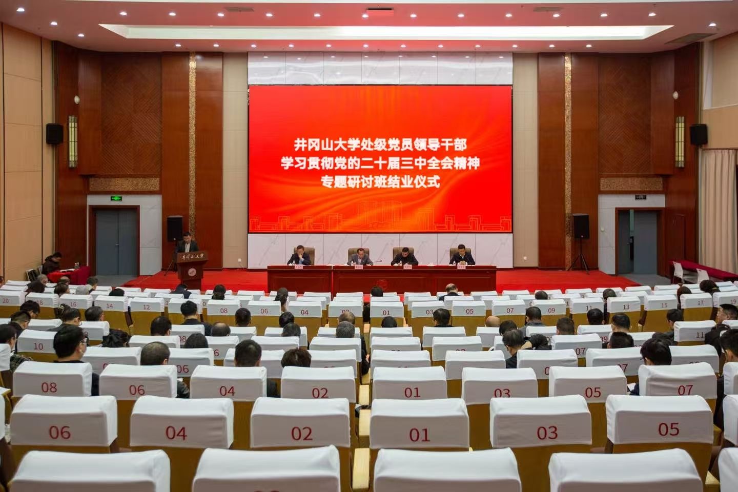 会议全面总结了此次专题研讨班的开展情况,充分肯定了专题研讨工作的成效,并就如何运用好此次专题研讨成果提出了要求。会议强调,深入学习贯彻党的二十届三中全会精神,要在持续深入学习上下更大功夫,将全会精神“学明白”,全体处级党员领导干部要发挥“关键少数”以上率下、领学促学作用,催生学校事业改革发展内生动力,提升改革发展能力水平;要在谋实创新举措上下更大功夫,将改革路径“理清楚”,聚焦做好中心工作、打好“申博攻坚战”,以改革创新思维推动教育综合改革、科技体制改革、人才发展体制机制改革、循环资源利用体制改革、干部人事制度改革等;要在狠抓落实落细上下更大功夫,将各项工作“干到位”,处级党员领导干部是推进学校改革发展的中流砥柱,要坚决扛起推进全面深化改革的重大责任,注重调查研究,坚持上下联动,确保改革任务统筹性推进、一体化落实。要聚焦聚力申博工作,锚定目标、奋勇前行,鼓足干劲、攻坚克难,落实好学校进一步全面深化改革各项工作举措,为奋力谱写井冈山大学改革发展新篇章贡献新的更大力量。