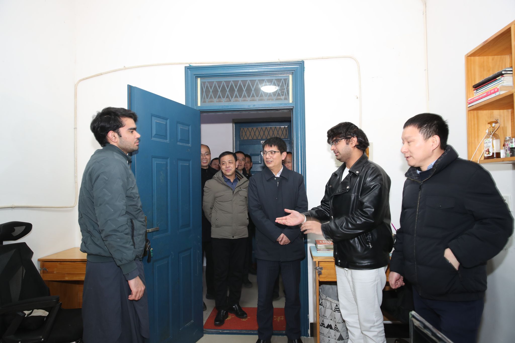 在巡查中,罗旭彪强调,要加快推进教室改造与设备升级,严格落实实验室安全管理,严把食品安全关,确保施工安全,为新学期平稳有序开局提供坚实保障。罗旭彪详细了解了留学生宿舍、图书馆及校园超市的运行情况,要求各部门以高度的责任感做好师生服务保障工作,营造安全、温馨的校园环境。(文/图:李琴;审核:黄赣生、胡正佩)