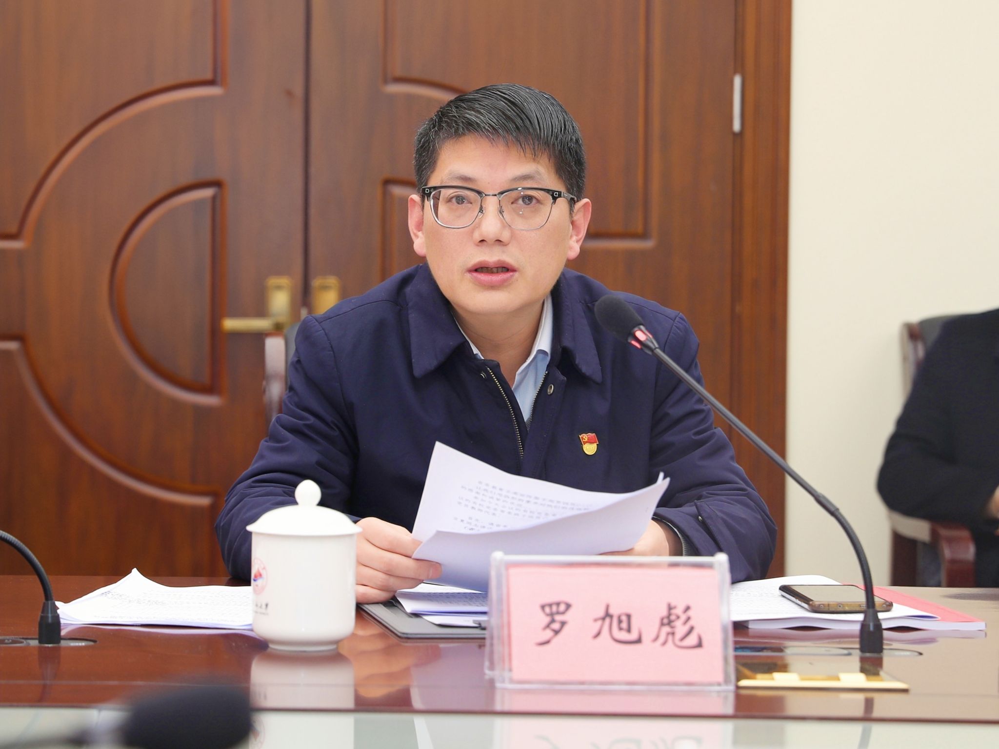 罗旭彪代表校党委常委班子通报学习贯彻习近平新时代中国特色社会主义思想主题教育专题民主生活会整改措施落实情况和本次民主生活会会前准备及征求意见情况,并代表学校党委常委班子作了班子对照检查。