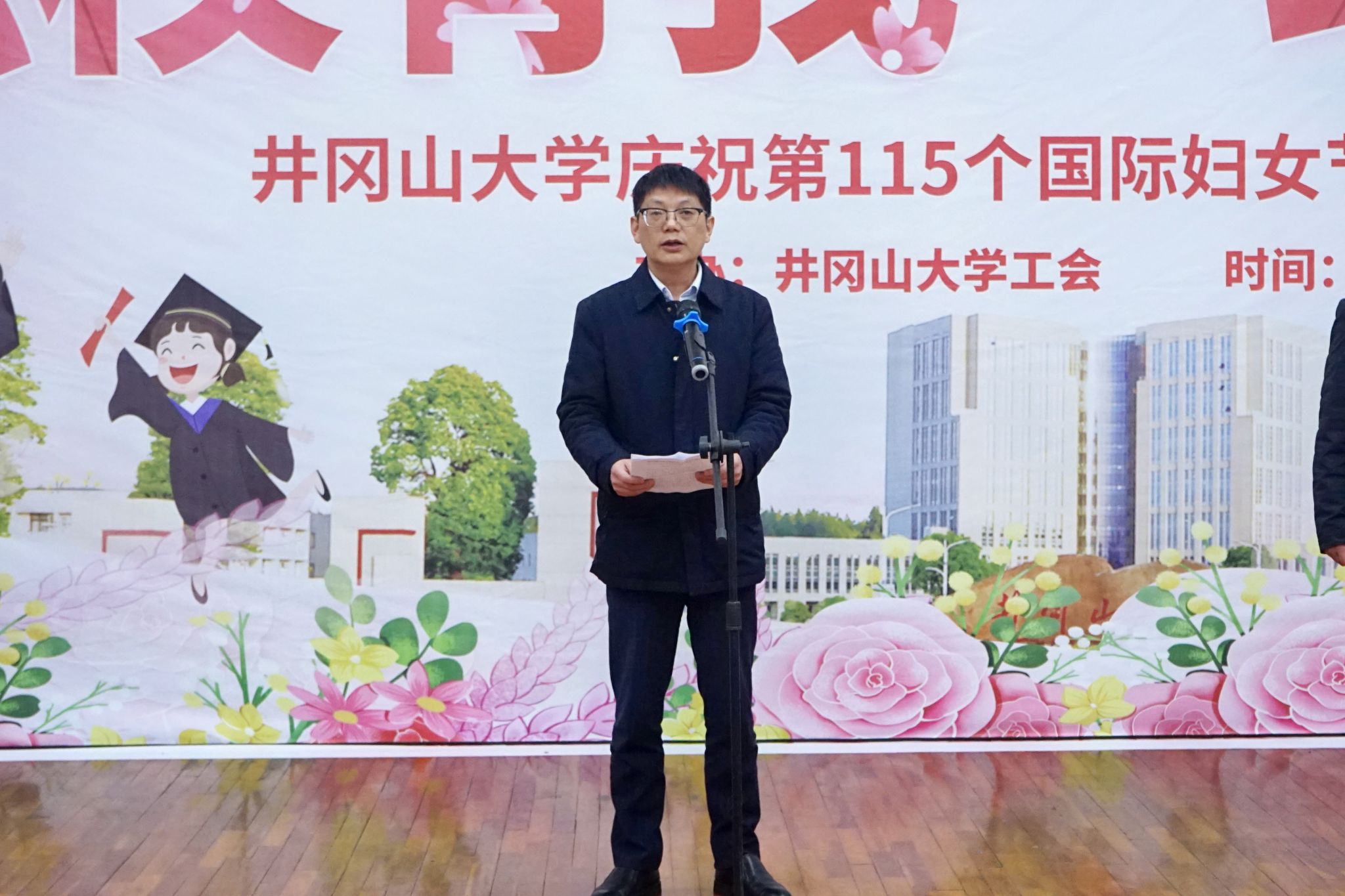 罗旭彪发表了热情洋溢的致辞。他代表井冈山大学党委向全校的女教职工致以节日的问候和最诚挚的祝福。罗旭彪指出,在过去的一年里,全校女教职工在各自岗位上发扬了‘巾帼不让须眉’的精神,与全体井大人一起披荆斩棘、砥砺奋进,推动学校在学科建设、教育教学、科研创新、社会服务等方面取得了令人可喜的成绩。希望全体女教职工继续发扬奋斗精神,为学校的未来发展贡献更多力量。