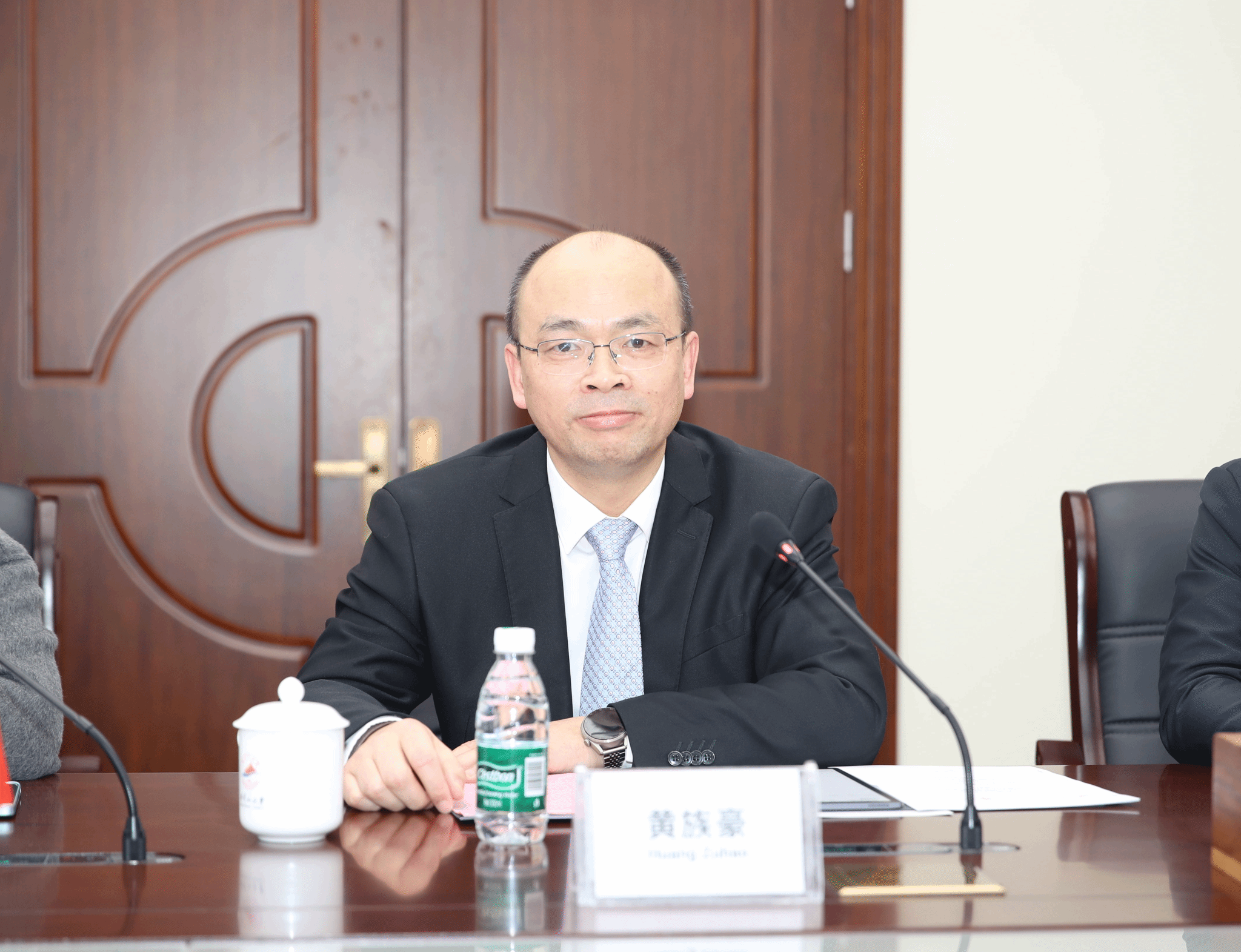 黄族豪对英国切斯特大学代表团来访表示热烈欢迎,并简要介绍了我校办学的基本情况。他指出,英国切斯特大学办学历史悠久,学科优势明显,国际化程度高,希望通过此访能够增进两校相互了解,凝聚合作共识,发挥各自优势,推动更多合作项目落实落地。