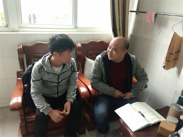 辅导员涂凰在学生宿舍办公室和大学生交流