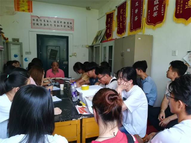 生命科学学院团委书记吴丽花在学生宿舍办公室和大学生交流