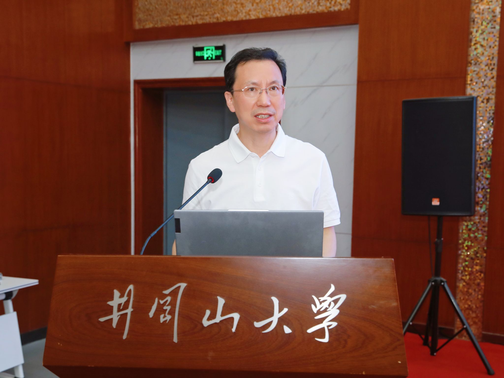 郑庆华围绕“时代之问:因何赋能”“理念内涵:赋能什么”“实践方案:怎么赋能”三个维度展开系统阐述。从人类文明发展与科技革命视角出发,指出人工智能是推动教育数字化转型的核心动能,深刻回应了“科技革命下教育如何变革”的时代命题,鲜明提出“重塑AI时代教育形态”的重要观点。在理念内涵上,他强调AI赋能教育的核心是“重构教育生态”,具体需实现“转理念、转平台、转模式、转场景、转生态”五大关键转变。结合同济大学的实践经验,他进一步提出,要以AI赋能教育模式创新、推动学科交叉融合、促进教育公平发展。郑庆华表示,同济大学将持续深化对口帮扶责任,在学科建设、人才培养、信息化建设等领域加大支持力度,助力井冈山大学打造具有特色的AI教育品牌。
