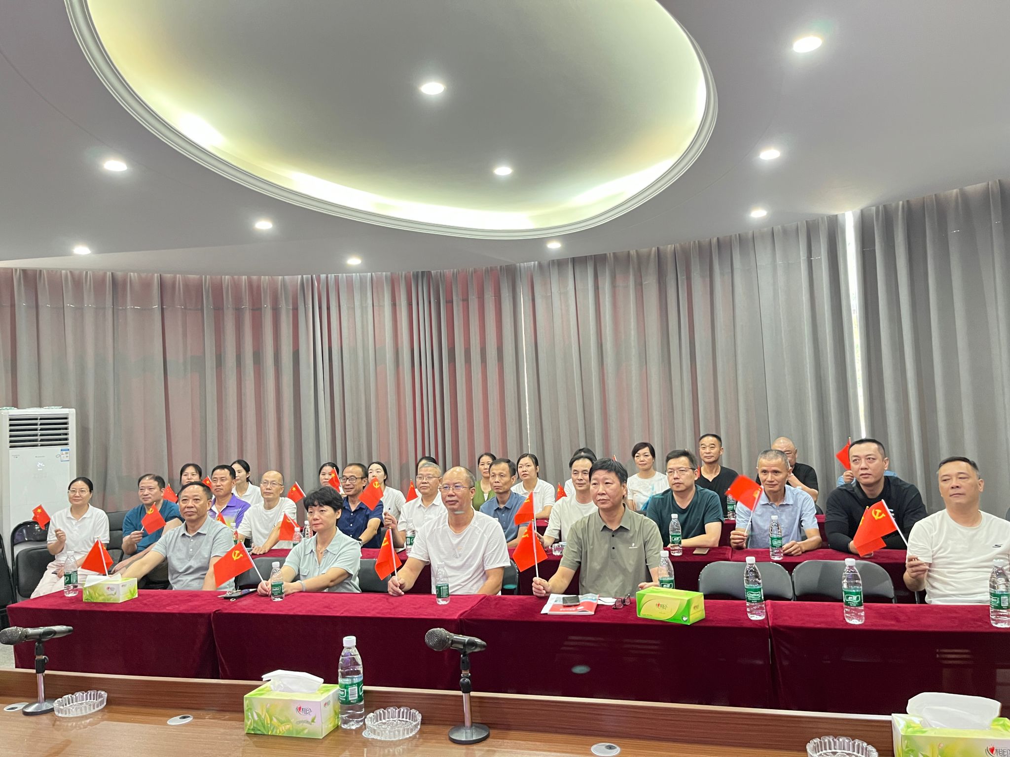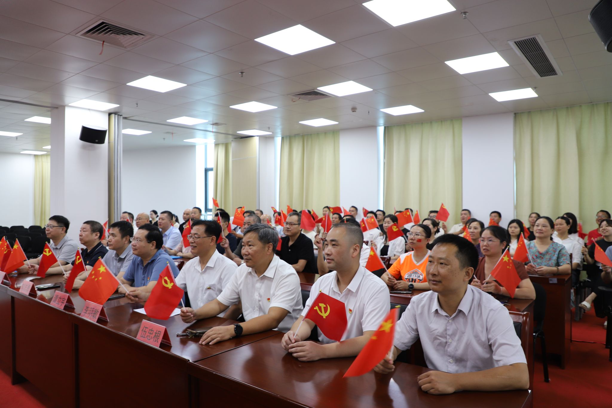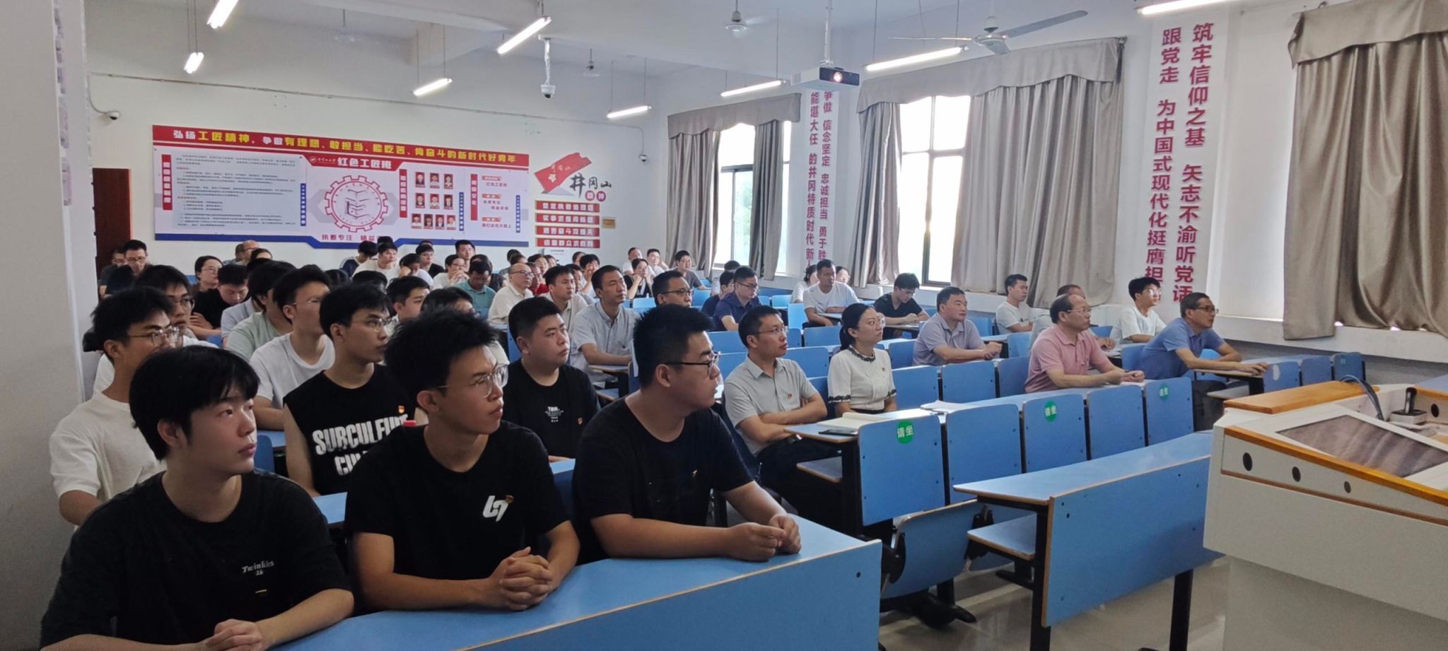 在图书馆学术报告厅主会场,全体在家的校领导与干部职工、退役军人、红色励志班学子集中收看仪式。