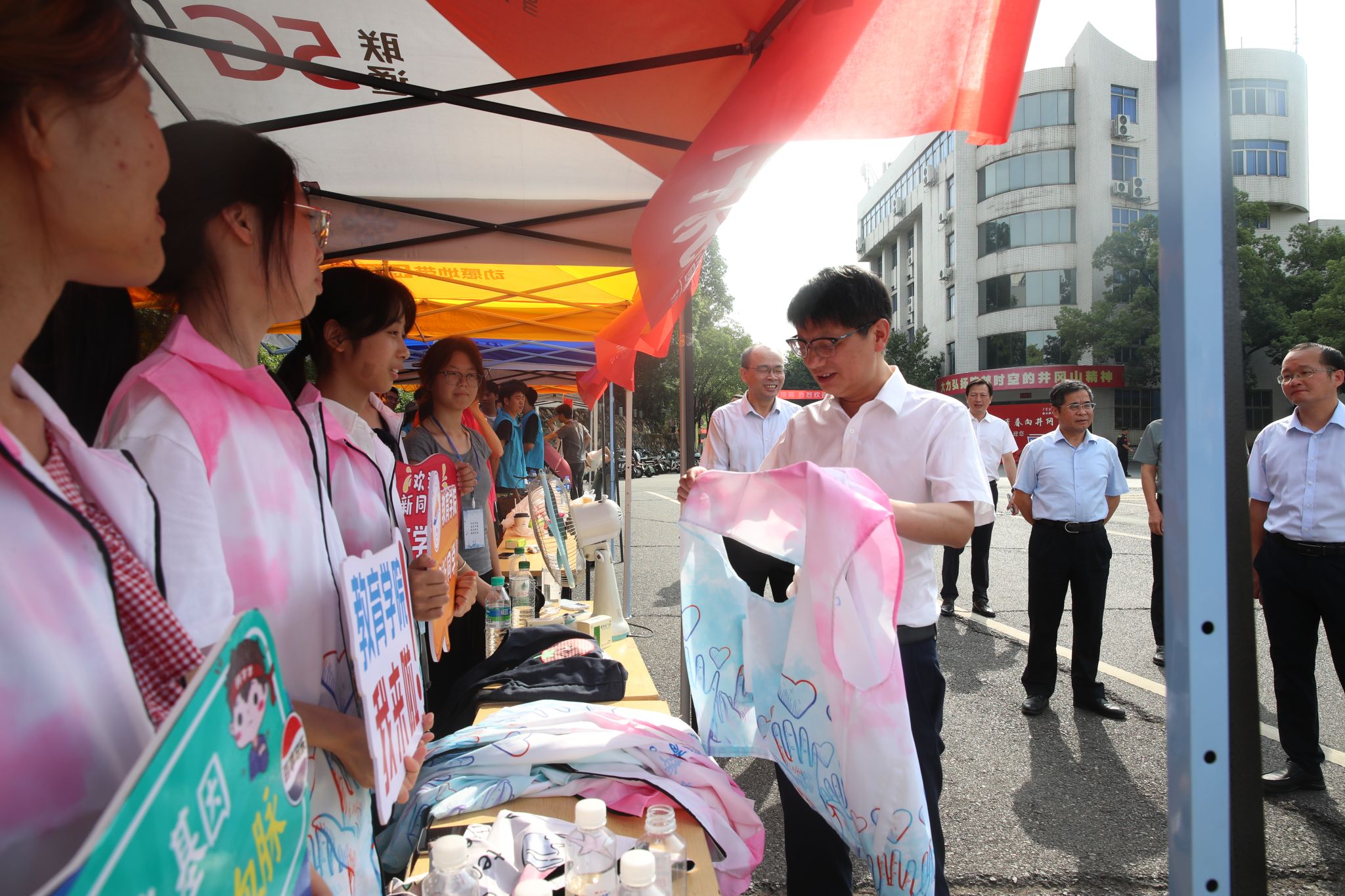 在各迎新站点,校领导们与一线志愿岗的迎新志愿者们亲切交流,对他们的辛勤工作表示肯定,并勉励志愿者们,“要坚守好岗位,展现出井冈山精神气质”。随后,校领导们分别到各迎新点和新建宿舍楼看望慰问新到的2025级新生及家长。