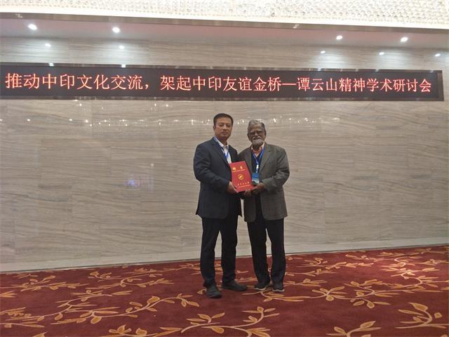 10月14日,推动中印文化交流、架起中印友谊金桥—谭云山精神研讨会在湖南茶陵举办,校长助理孙宜学教授代表我校向谭云山长子、印度中国研究所创所主席谭中先生,印度中国研究所莫汉蒂(Monoran Mohanty)教授以及王义桅教授(中国人民大学国际关系学院)、毛世昌教授(兰州大学印度研究中心主任)、魏丽明教授(北京大学亚非系主任)、钱峰教授(清华大学国家战略研究院研究部主任)颁发了印度研究中心兼职教授聘书,谭中先生同时受聘中心名誉主任。