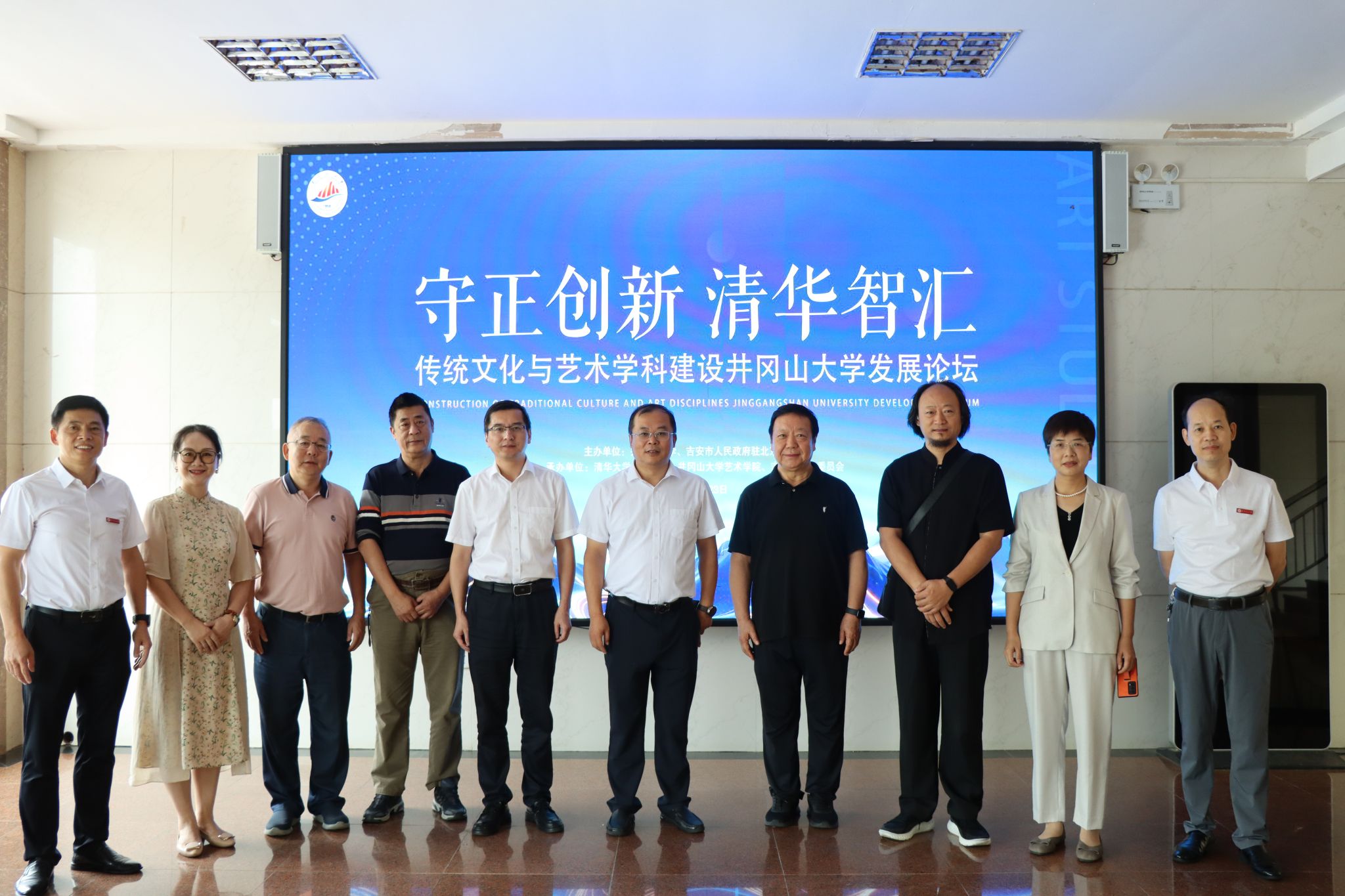 9月23日,由我校与吉安市人民政府驻京联络处联合主办,清华大学美术学院与井冈山大学艺术学院、吉州窑管理委员会共同承办的“守正创新 清华智汇——传统文化与艺术学科建设井冈山大学发展论坛”在学校举行。特邀清华大学美术学院张夫也教授作主旨报告;校党委常委、副校长隋岩,吉安市政府副秘书长、驻北京联络处党组书记、主任周军蓉,校党委常委、宣传部部长肖洪海,清华大学专家团队、省内高校艺术学科专家学者、吉州窑管委会领导,以及艺术学院领导和师生代表400余人参会。