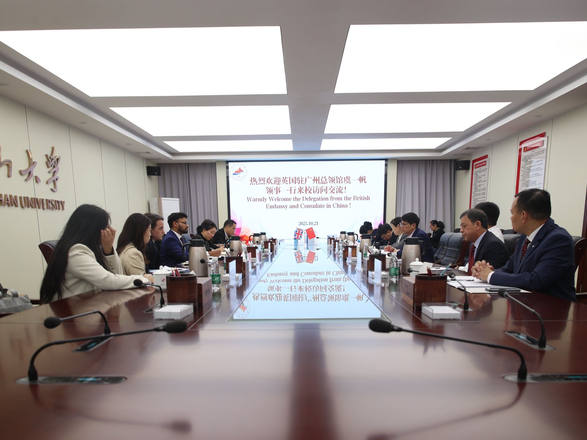 10月21日,英国驻华大使馆政务处一等秘书诺杰(Anojan Ratnarajah)、英国驻广州总领事馆华南区域合作领事虞一帆(Emma Meads)一行5人来校访问交流,省、市外办相关处室领导陪同。校党委书记罗旭彪会见访问团一行并出席交流座谈会,校长助理刘关俊主持会议,国际合作与交流处、井冈山研究中心相关负责人参加座谈。