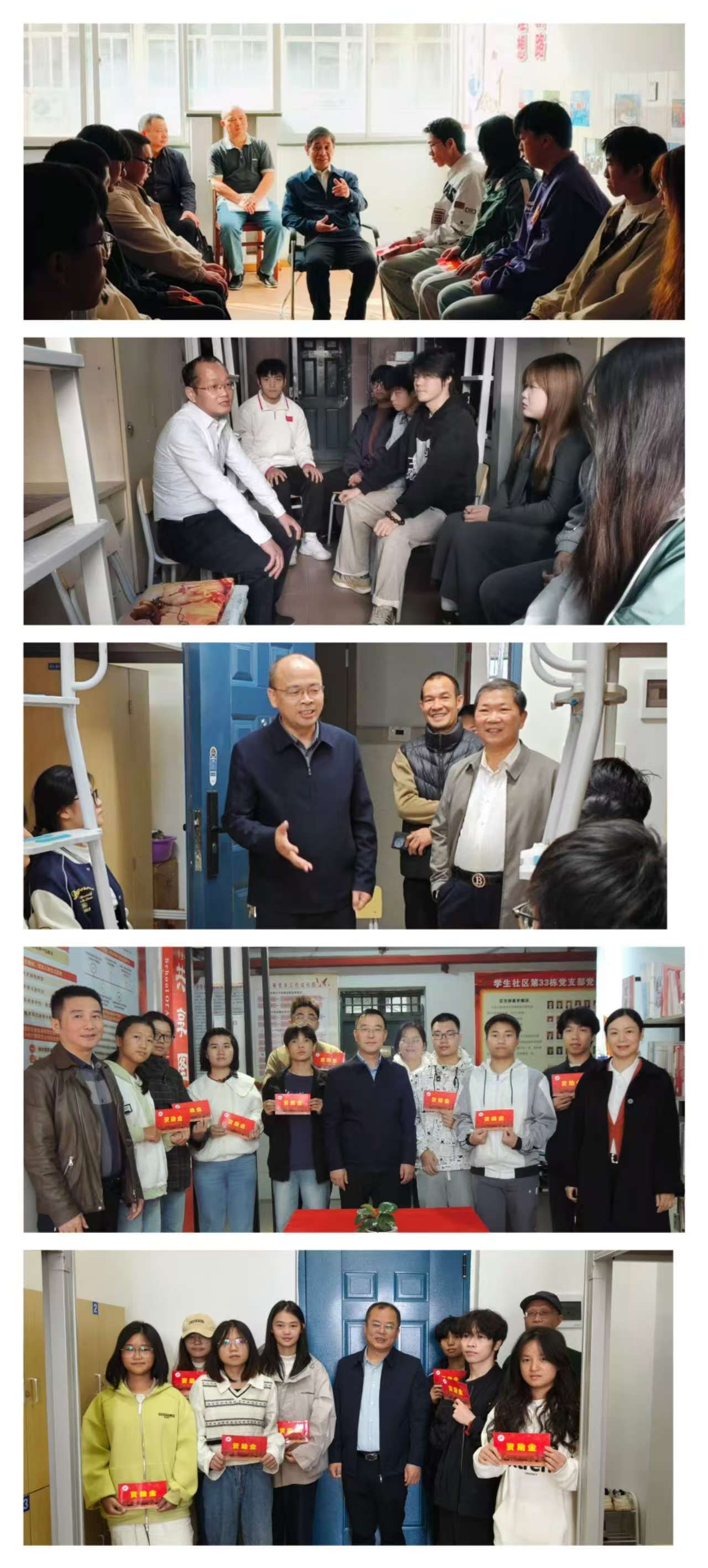 在我校即将迎来 67 周年校庆的温馨时刻,学校以实际行动践行 “以生为本” 理念,将对学生的关怀落到实处。10 月 28 日前夕,校党委书记罗旭彪、党委副书记肖宜安等在家的校领导,分别带领学生资助中心人员,前往学生宿舍、学生社区等地,开展走访慰问学生代表活动,帮助学生解决实际困难,切实增强他们的校园归属感与幸福感,为学生传递校庆的美好祝福与校园的温暖关怀。