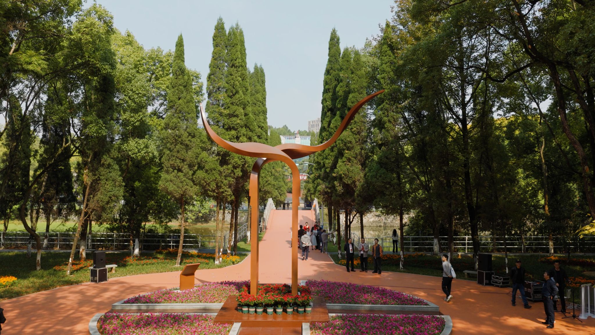 当天上午还举行了同济大学对口支援井冈山大学二十周年纪念雕塑揭幕仪式,刘润与罗旭彪共同按下启动柱,为名为“腾飞”的纪念雕塑揭幕。该雕塑以“幼苗”为型,高6.7米呼应井大建校67周年,基座20公分象征二十年合作积淀,中部“时光之门”镌刻两校校徽、校训及对口支援大事记,寓意两校携手奋进、共启未来。