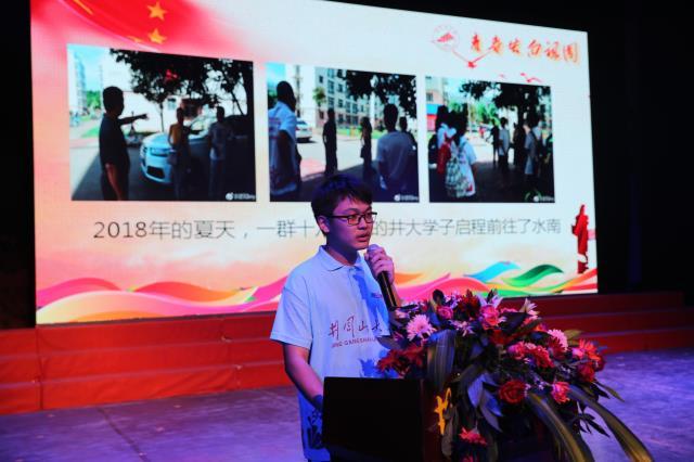建筑工程学院的陈昊同学分享了自己利用所学专业知识,在吉水县水南镇两年下乡实践中,为建设美丽新农村而承担的文化墙绘制和古建筑测绘调研工作任务。陈昊号召同学们,要把小我融入大我,让青春之花绽放在祖国最需要的地方。希望更多的井大人,可以将所学的知识带到乡村中去,为建设美丽和谐幸福的新农村提供一份绵薄之力。