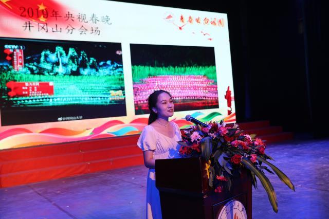 2019年央视春晚井冈山分会场,精彩的7分钟回望了井冈山的峥嵘岁月,展现了新时代井冈山的崭新形象。这7分钟的演出凝聚了以艺术学院李若彤同学为代表的2000多名井大学子排除万难的坚守,展示了2000多名学子信念坚定、刻苦努力、团结拼搏、敢于超越的精神风貌。李若彤在宣讲中讲述了那段刻骨铭心的经历,表示将永远传承春晚中练就的“春晚力量”,从更高站位、更高层次进一步传承弘扬好跨越时空的井冈山精神。