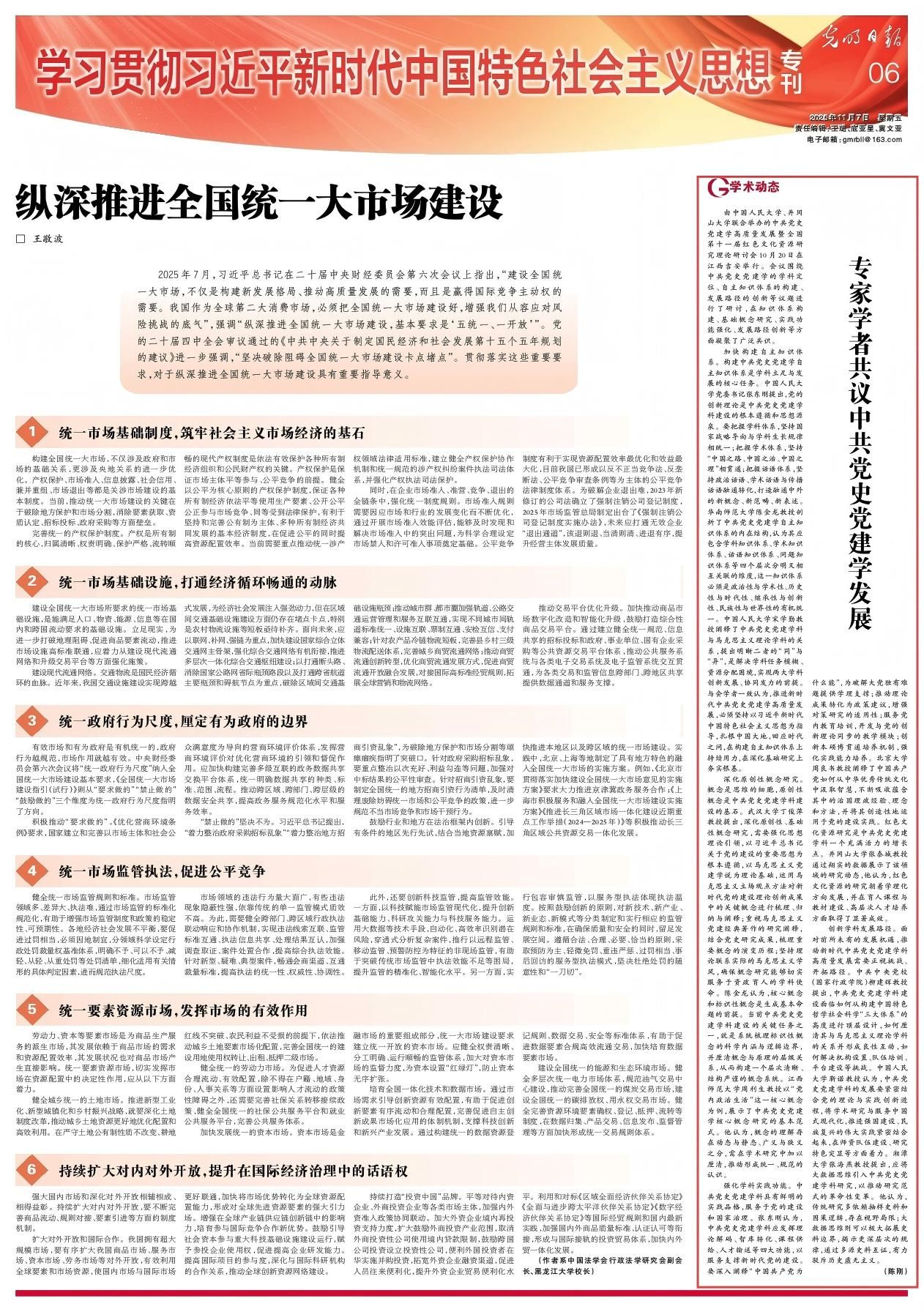创新学科发展路径。面对前所未有的发展机遇,推动新时代中共党史党建学科高质量发展需要正视挑战、开拓路径。中共中央党校(国家行政学院)柳建辉教授提出,中共党史党建学科建设面临如何从构建中国特色哲学社会科学“三大体系”的高度进行顶层设计,如何厘清其与马克思主义理论学科的关系并形成良性互动,如何解决机构设置、队伍培训、平台建设等挑战。中国人民大学靳诺教授认为,中共党史党建学科的发展要紧密结合党的理论与实践创新进程,将学术研究与服务中国式现代化,推进强国建设、民族复兴的伟大实践紧密结合起来,在师资队伍建设、研究特色突显等方面着力。湘潭大学张海燕教授提出,应将大数据思维引入中共党史党建学科研究,以推动研究范式的革命性变革。他认为,传统研究多依赖抽样史料和因果逻辑,存在视野局限;大数据思维则可以极大拓展史料边界,揭示更深层次的规律,通过多源史料互证,有力驳斥历史虚无主义。(作者:陈刚)
