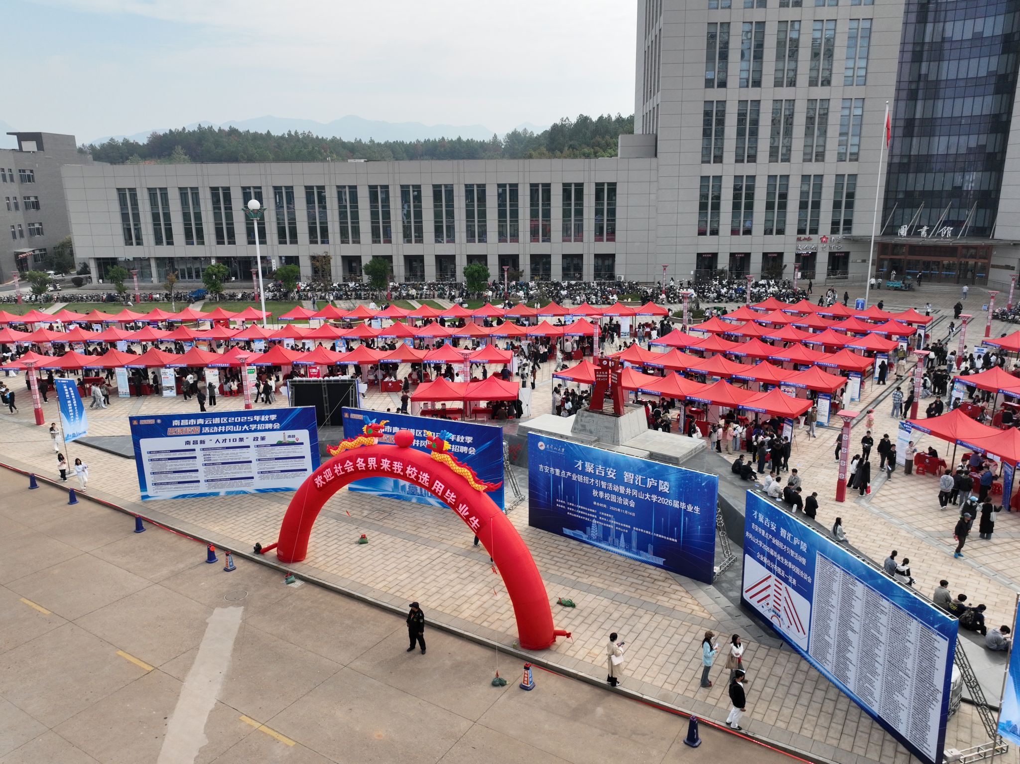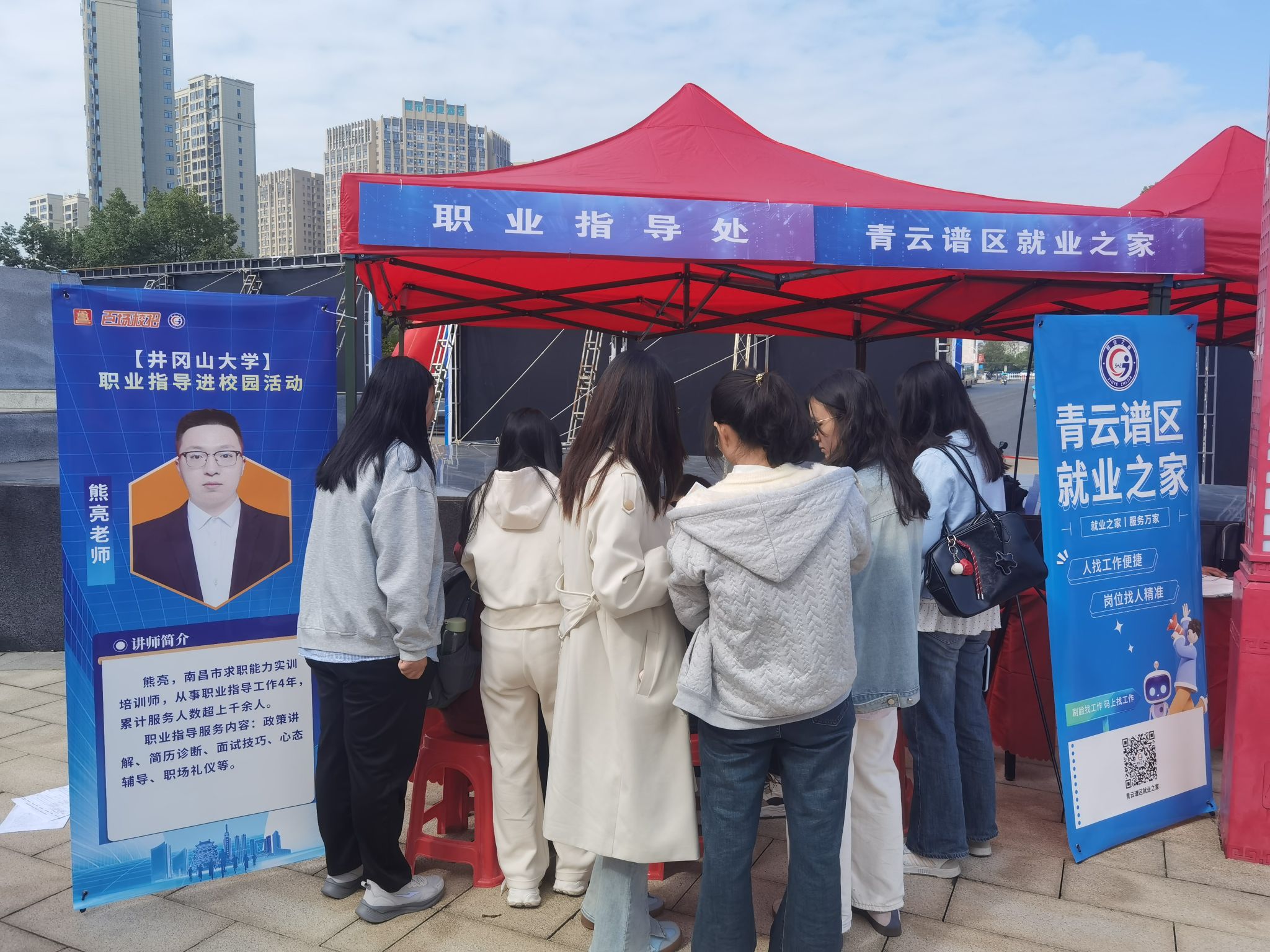 11月14日,学校在映山红广场举办““才聚吉安 智汇庐陵”吉安市重点产业链招才引智活动暨井冈山大学2026届毕业生秋季校园洽谈会。本次双选会由江西省人力资源和社会保障厅、江西省教育厅主办,惠州市人力资源和社会保障局、吉安市人力资源和社会保障局、南昌市青云谱区人力资源和社会保障局、井冈山经济技术开发区人力资源和社会保障局与学校共同承办组织。