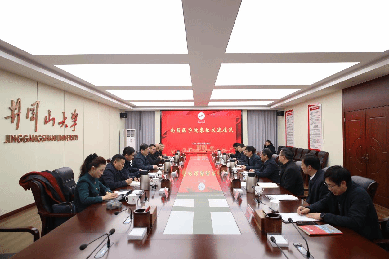 罗旭彪向殷剑一行来校调研交流表示热烈欢迎,并介绍了学校在学科建设、人才培养和科研创新等方面的发展情况。他指出,近年来,井冈山大学立足红色基因传承与区域发展需求,以“提质扩容、内涵发展”为主线,在学科排名、校区建设、科研创新及人才培养等方面实现跨越式提升。当前,学校聚焦博士授权单位申报目标,全力推进学科内涵建设和科研能力提升,持续优化学科布局,强化学术团队建设,深化产学研用协同创新。南昌医学院作为兄弟院校,在医学教育和卫生健康领域具有鲜明特色与优势,希望双方发挥各自资源优势,深化合作,探索出一条地方高校高质量发展路径。