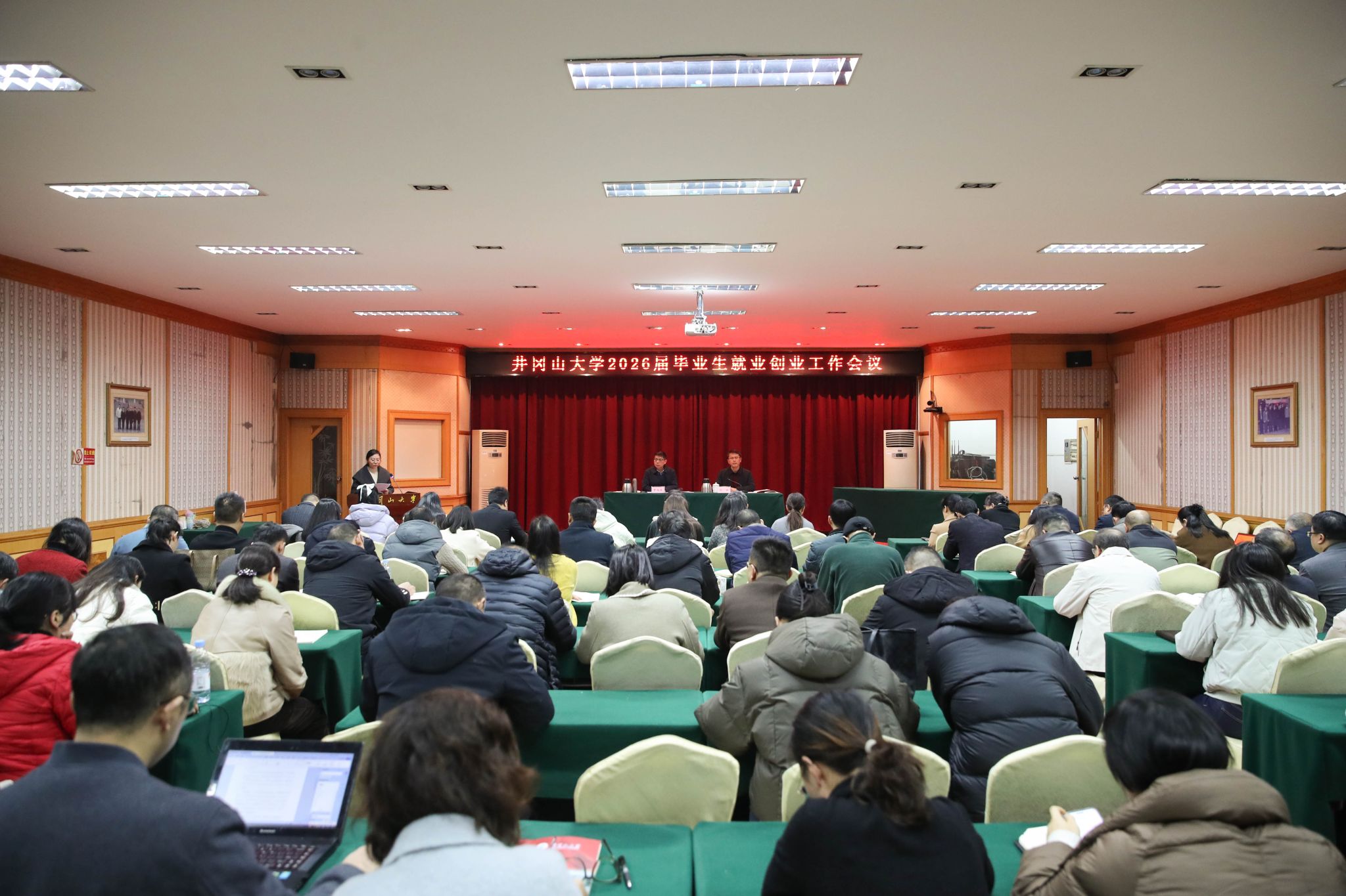 为深入贯彻党的二十大和二十届四中全会精神,全面落实国家和江西省高校毕业生就业创业工作决策部署,全力促进2026届毕业生更加充分更高质量就业,12月29日,学校召开2026届毕业生就业创业工作会议。校党委书记罗旭彪出席会议并讲话,校党委常委、副校长冷明主持会议并作就业创业工作报告。学校毕业生就业工作领导小组成员、各学院院长、党委副书记、就业干事、毕业年级辅导员,以及就业工作先进个人参加会议。