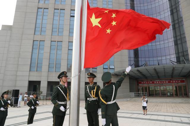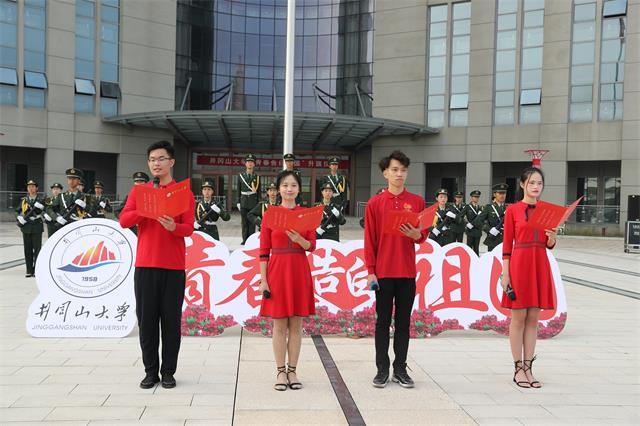 迎着柔和的朝阳,“映山红”国旗护卫队迈着矫健的步伐走上升旗台,在高亢、激昂、嘹亮的国歌声中,五星红旗冉冉升起,校领导、老师和新生们齐声同唱国歌、肃立共行注目礼。鲜艳的五星红旗高高飘扬在井冈山大学的上空,也飘扬在所有师生的心中。