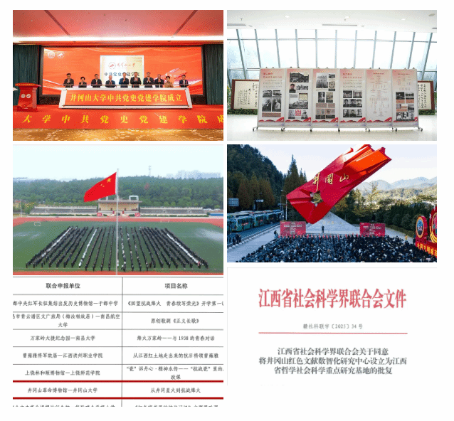 2025年12月31日,江西省社会科学界联合会正式发文,同意将井冈山红色文献数智化研究中心设立为江西省哲学社会科学重点研究基地,标志着学校在红色文化研究与数智化融合领域迈出关键一步。学校成立了全国第五个中共党史党建学院,为健全“大思政”格局提供了坚实的学科依托与人才支持。获赠天安门国旗,依托获赠的天安门国旗创新构建 “国旗+”爱国主义教育新模式。组织近5800名新生参加“我的井冈行”红色研学,学生们在研学中“寻根、铸魂、力行”,让红色基因传承“有形、有感、有效”。获评“全国五四红旗团委”;获批“从井冈星火到抗战烽火”大思政课省级优质思政项目;获批“专题+艺术”特色思政课项目;“映山红”党建品牌被省委组织部简报专文推介;“知情体悟行”红色励志实践育人体系被省委教育工作领导小组专文推介,相关经验获省委专题推介及《光明日报》整版报道。标志着立体化、智能化的“大思政”育人生态已成熟完善。