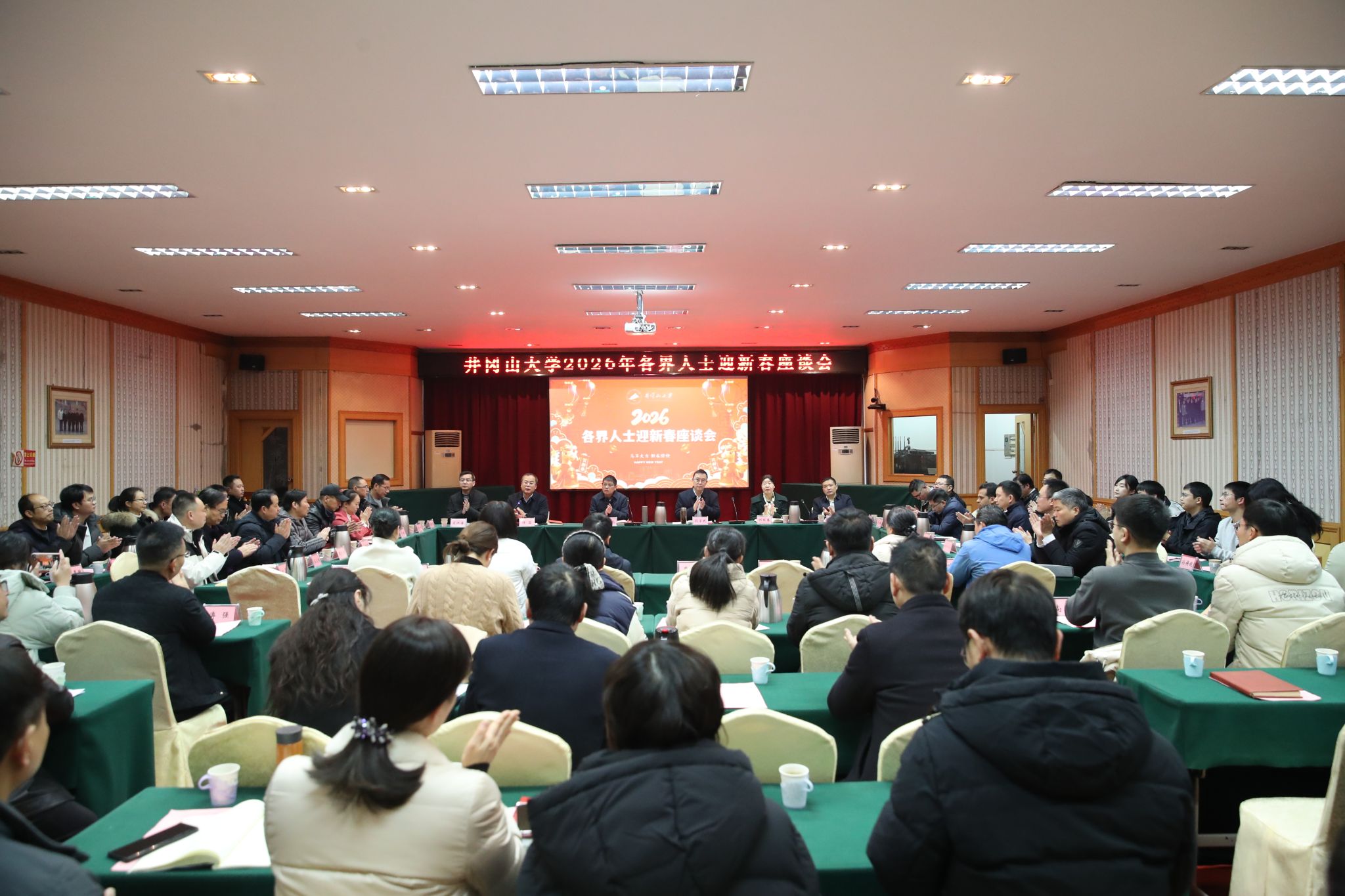 会上,罗旭彪代表学校党委、行政,向全体井大教职工,井大各非直属附属单位的教职员工致以诚挚敬意,向井大学子致以美好的祝愿,向关心、支持学校建设发展的离退休老同志、广大海内外校友和社会各界人士致以衷心的感谢和新春的问候。