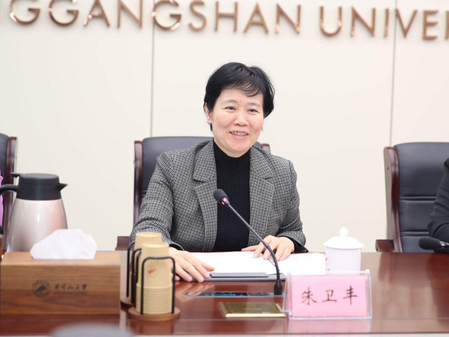 罗旭彪代表学校对朱卫丰一行的到来表示热烈欢迎。他简要介绍了我校办学发展、医学学科建设及附属医院运营等基本情况。他指出,井冈山大学与江西中医药大学同为江西高等教育事业的重要力量,肩负着服务区域医疗卫生事业发展、培养高素质医学人才的共同使命。我校始终高度重视医学教育与附属医院建设,愿与兄弟院校深化交流协作,共享发展经验,共同探索校际协同、校地联动的医学教育发展新路径,为守护江西人民健康福祉贡献高校力量。