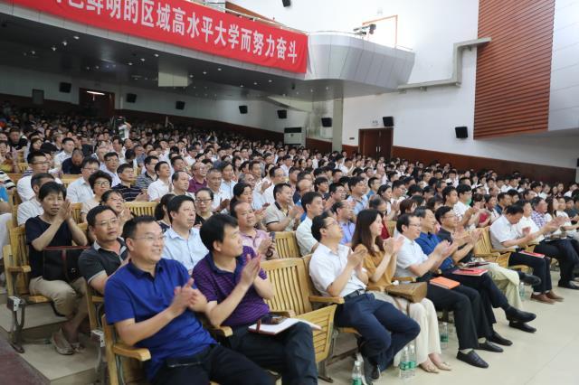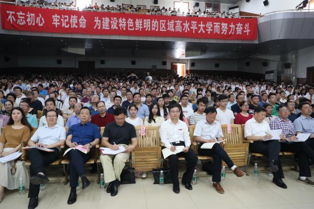 根据省委的统一安排部署,6月19日上午,省委宣讲团成员、省发展和改革委员会党组书记、主任张和平来校宣讲习近平总书记视察江西时的重要讲话精神。他强调指出,要不忘初心,牢记使命,以更加昂扬的斗志,创造出更加优异的成绩,为描绘好新时代江西改革发展新画卷作出新的更大贡献。党委副书记、校长曾建平主持报告会,校领导温和瑞、左继生、吕玉华、史胜平、陈小林、黄俭根、李军,以及全校副处级以上干部,全体辅导员,马克思主义学院全体教师,大骨班、红色励志班、映山红青年学院读书班、国学院学员,各学院(部)师生代表共1400余人参加报告会。