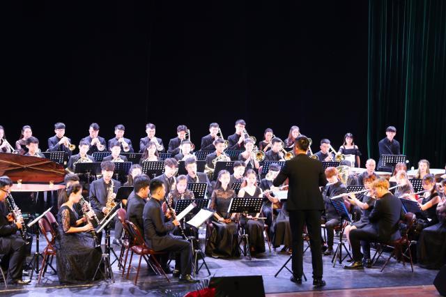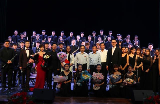 为隆重庆祝中华人民共和国成立70周年,深入开展“我和我的祖国”群众性主题宣传教育活动,5月28日晚,我校管乐团在学校音乐厅隆重举办“红色畅想传颂经典”交响管乐专场音乐会。校党委副书记、校长曾建平,党委副书记温和瑞,与全校师生代表400余人齐聚一堂观看演出,共同抒发对伟大祖国的无限热爱和对新中国七十华诞的深切祝福。 晚七点半,音乐会在一曲宏伟庄严的颂歌《红旗颂》中拉开序幕,该曲表现了中国人民在红旗的指引下,英勇顽强,奋发向上的革命气概,热烈讴歌了伟大祖国蒸蒸日上的繁荣景象。随后,《我和我的祖国》通过优美动人的旋律,用抒情和激情相结合的方式,表达了人们对伟大祖国的衷心依恋和真诚歌颂。音乐会还上演了《民歌联奏》《世界名曲联奏》等经典作品,一首首耳熟能详的音乐演绎,使观众沉浸在音乐的海洋里,也掀起了一波又一波高潮。