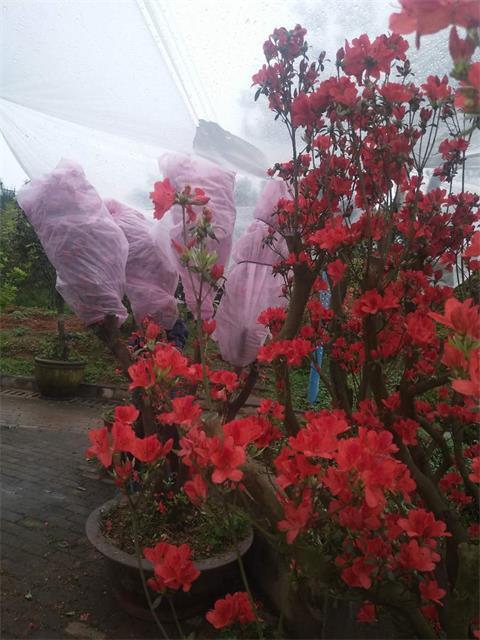 4月以来,吉安天气多变,强对流雷暴天气多发,气温不断上升,这些因素都不利于井冈映山红保花,甚至会因强风暴雨而过早凋谢、缩短花期。胡雪华带领工作人员,临时为这些映山红搭建遮雨棚,覆膜保护,及时通风降温、防风避雨,尽量延长花期。4月15日,江西省世园会工作组通知,10株井冈映山红当天务必要装车运往北京。这天又是一个暴雨天气,在做好充分准备工作后,胡雪华、许东梅老师和工人们冒雨对10株映山红进行打包和技术处理,并想方设法保持映山红透气性的同时又尽量避免碰伤,并且在运输过程中进行降温,避免缩短花期。直到映山红安全抵达北京,并顺利安放种植,大家才松了口气。