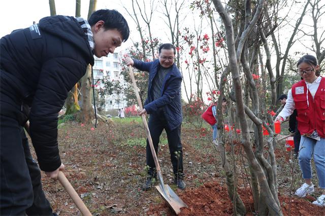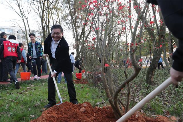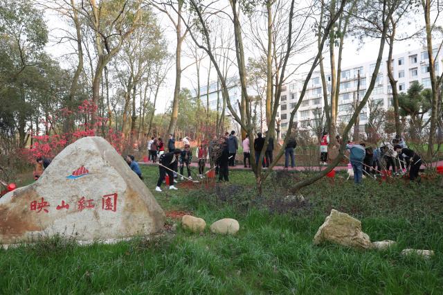 开幕式后,校领导和师生来到映山红园,挥锹培土,洒水施肥,一起种下了映山红。之后,部分师生前往北区生物园至十一栋教学楼前的映山红种植培育区,进行了映山红游园观赏活动。