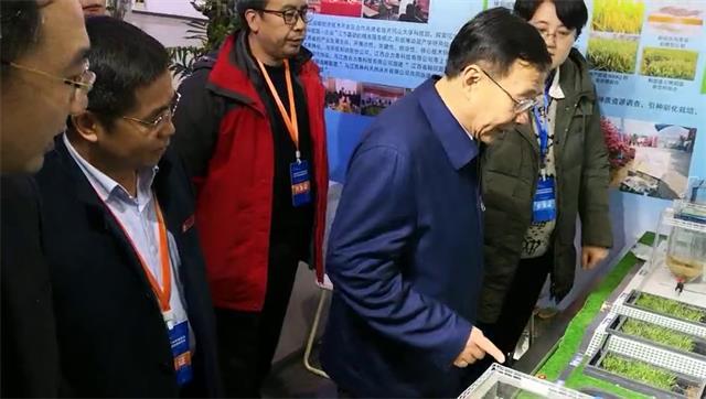 省政协党组书记、政协主席姚增科(中)到我校展区参观指导