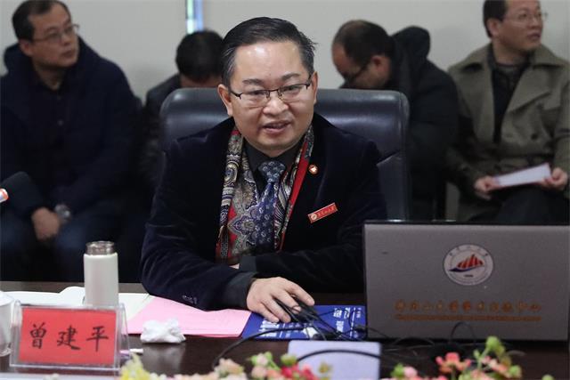曾建平代表学校对乔东、刘先德来校指导实验室检测认证工作表示欢迎和感谢,他重点介绍了学校的人才培养、科学研究、服务社会、文化传承与创新等方面的基本情况。