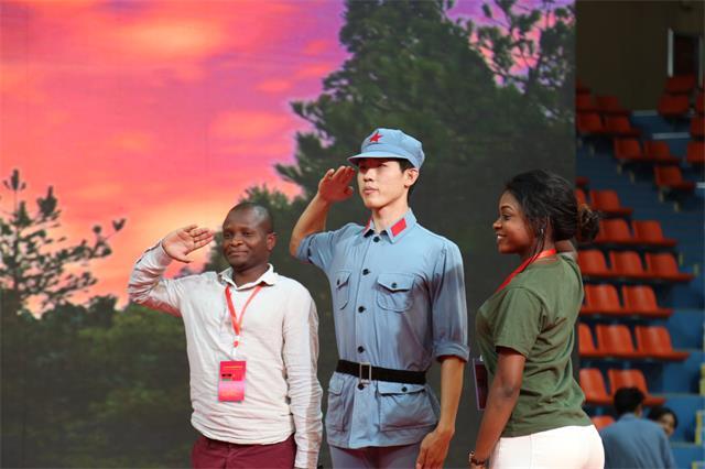 巡演过程中,令剧组师生们意想不到的是,还出现了黑皮肤的“洋观众”,他们是正在江西外语外贸学院参加2018年马拉维旅游管理研修班和法语国家地方政府负责人研修班的官员们。拥有不同文化背景的“洋观众”能看懂这部红色大戏吗?“演出非常精彩,令人印象深刻,我们不仅欣赏到了中国的民间歌舞艺术和充满特色的服装,更重要的是对中国共产党的早期奋斗史有了更清晰和直观的了解。”马拉维旅游管理研修班的一位官员表示,艺术没有国界,尽管他不懂汉语,但是富有这场极富感染力的演出把他带入了中国革命的历史场景之中。不仅如此,更多的“洋观众”们向同学们竖起了大拇指,大声说着“very good!”,并主动要求合影留念,学着敬起了军礼。