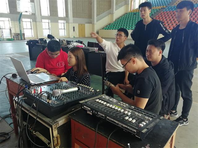 灯光音响保障组的同学们正在紧张地调试设备