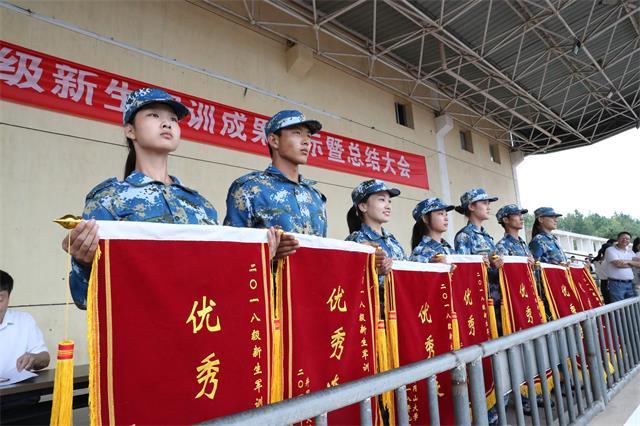 各学院新生方队代表在大会上进行了精彩的分列式和会操表演,展示了大学生昂扬向上的精神风貌,武警吉安市支队军训教官们进行了擒敌拳表演。商学院、艺术学院、生命科学学院、政法学院、医学部、电子信息工程学院、体育学院被评为优秀连,20个班级被评为优秀排,30名教官被评为优秀教官。