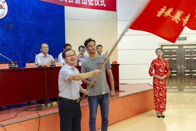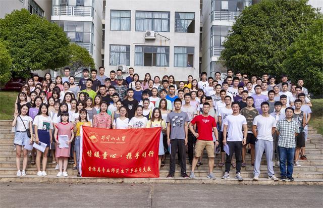 8月31日下午,学校举行2018年秋季音体美专业师范生实习支教动员大会暨出征仪式,党委常委、副校长黄俭根出席并为实习生授旗,吉安市教育局有关负责人出席并讲话,学校教务处负责人主持仪式,体育学院体教本(3)班陈宁同学代表全体支教同学做了表态发言。我校音乐专业65人、美术专业35人、体育教育专业65人以及江西师大美术专业30人参加了出征仪式,随后将奔赴吉安地区13个县市65所农村小学进行为期一学期的支教活动。
