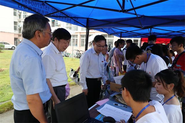 当天上午,彭涉晗、曾建平、肖长春、左继生、吕玉华、史胜平、陈小林、黄俭根、肖宜安、孙宜学等全体校领导,在有关部门负责人陪同下,冒雨来到各学院报名点和学生宿舍看望报到的新生及家长,慰问工作人员。