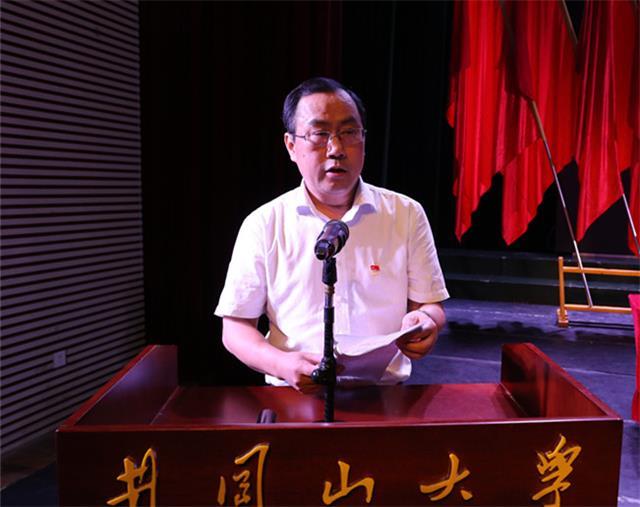 先进基层党委代表人文学院党委副书记康永、“映山红”党支部代表艺术学院音乐系学生第二党支部副书记李健、优秀共产党员代表附属医院中医党支部党员邹园华先后作了发言。