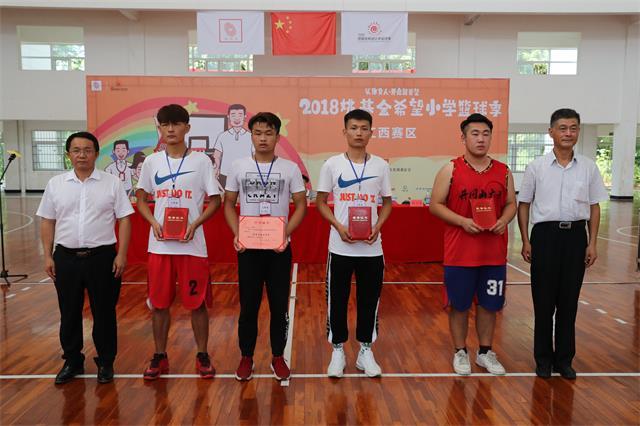 副校长左继生、北京姚基金公益基金会秘书长叶大伟为晋级全国联赛的球队颁奖