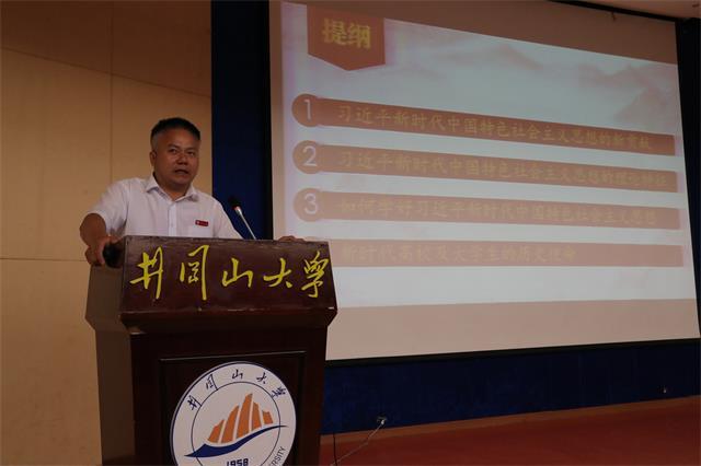 孙斌教授从习近平新时代中国特色社会主义思想的新贡献、习近平新时代中国特色社会主义思想的理论特征、如何学好习近平新时代中国特色社会主义思想、新时代高校及大学生的历史使命等四个方面入手,阐述了习近平新时代中国特色社会主义思想是理论创新的新贡献,是在新的历史起点上进行伟大斗争、建设伟大工程、推进伟大事业、实现伟大梦想的行动指南和思想武器。强调师生要坚持读原著、学原文、悟原理,全面把握、融会贯通。同时指出,习近平总书记在北京大学考察时的讲话,为高校发展和大学生成长指明了新方向。