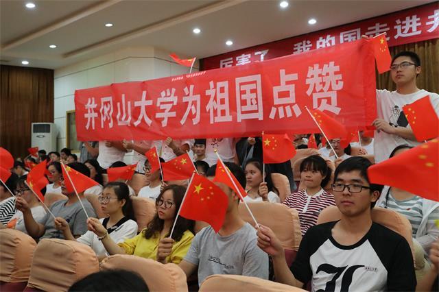 电影放映结束后,全体师生纷纷起立,高唱国歌,并拉起了“井冈山大学为祖国点赞”的横幅,现场气氛十分热烈。同学们纷纷表示,作为一名新时代的当代青年学生,我们唯有以满腔热血回报祖国,迫不及待地去为国家建设和家乡建设贡献自己的力量。