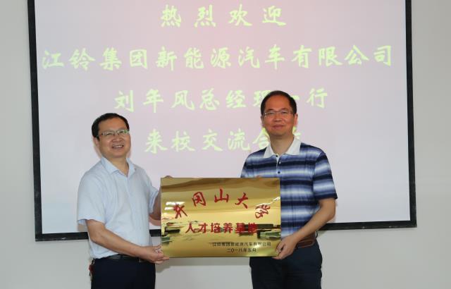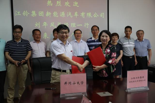 5月21日,江西江铃集团新能源汽车有限公司与井冈山大学合作协议签订仪式在校举行,党委副书记、校长曾建平,江铃集团新能源汽车有限公司总经理刘年风分别代表双方签署协议。党委常委、副校长吕玉华主持仪式,党委常委、副校长黄俭根和江铃集团新能源汽车有限公司人企部部长郭彬代表双方为江铃集团新能源汽车有限公司井冈山大学人才培养合作基地授牌。学校有关部门、学院负责人以及江铃集团新能源汽车有限公司有关负责人参加了仪式。双方还在仪式上就有关合作事宜进行了深入洽谈。