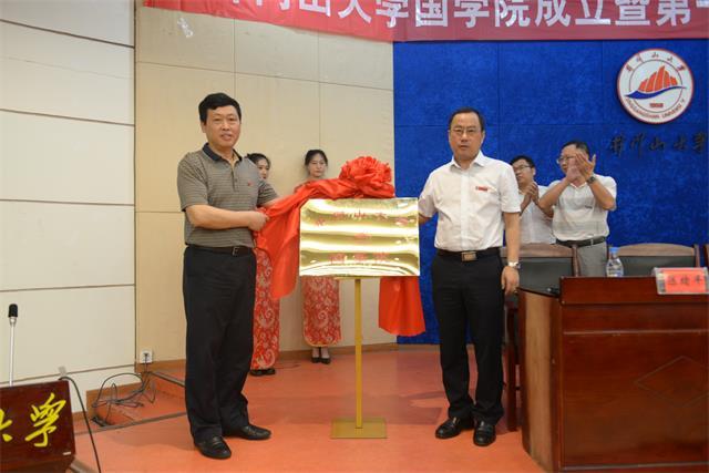 为贯彻落实全国、全省思想政治工作会议精神,传承和弘扬中华优秀传统文化,5月12日上午,我校国学院正式揭牌成立,并举行首期培训班开班典礼。校党委副书记肖长春出席成立大会并讲话,有关学院、部门负责人,以及国学院院长、执行院长和部分教师、首期培训班200名学员参加仪式。