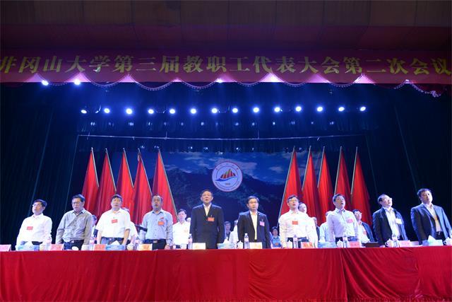 4月22日,井冈山大学第三届教职工代表大会第二次会议隆重召开。155名正式代表出席会议,部分列席代表列席会议。校领导彭涉晗、曾建平、肖长春、左继生、吕玉华、史胜平、陈小林、黄俭根、肖宜安、孙宜学出席会议,并在主席台前排就坐。本次大会的主要任务是:审议通过学校工作报告和财务工作报告,听取提案工作报告,审议校学术委员会工作报告,审议通过《井冈山大学专业技术资格条件(2018版)》,审议通过《井冈山大学特设岗管理办法》。